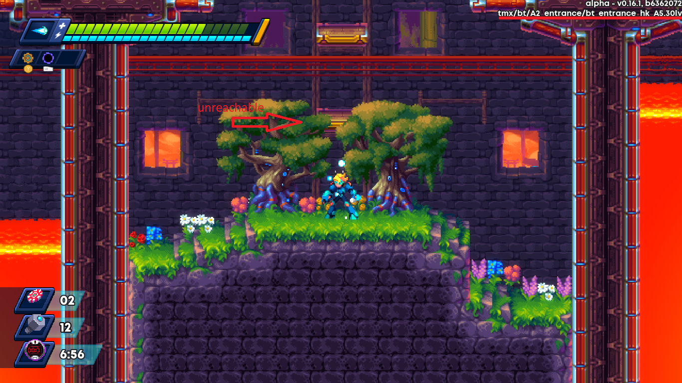 | Description | On chunk "bt_entrance_hk_A5.30lv" it is possible to get stuck going for a secret at the lower part of the chunk, unless you have an upgrade which increases your jump height or the "Help! I'm stuck!" button, there is no way out. -Kyatto | ||||