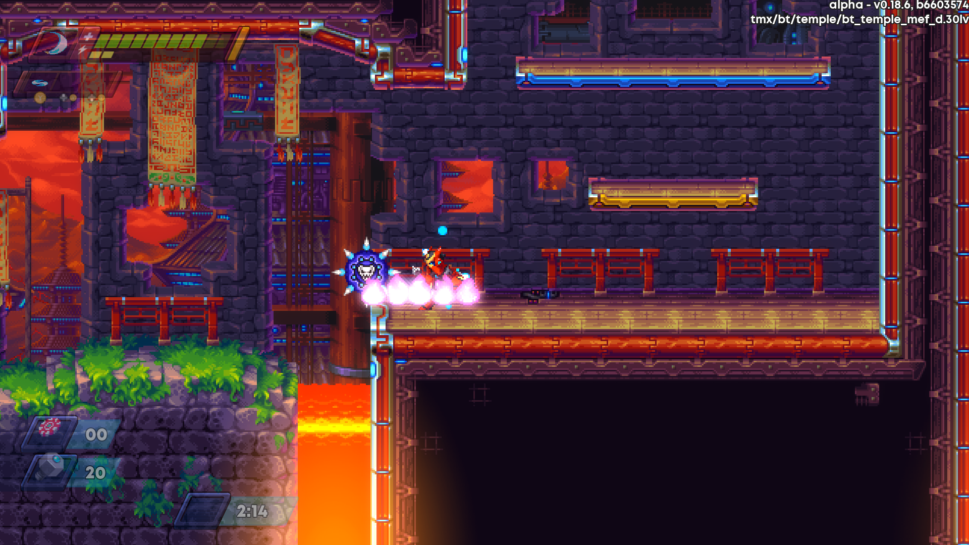 | Description | The spiked wheel enemies in burning temple have a beta version that leave behind a trail of pink flames. These flames are harmless. | ||||