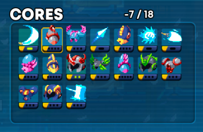 | Description | I had started a run a day ago and then opened it today and saw that I had -7/18 Core spaces used (as I had unequipped all cores except one as soon as I opened the game). I did not perform any hacks or glitches on purpose nor did I have any mods activated. | ||||