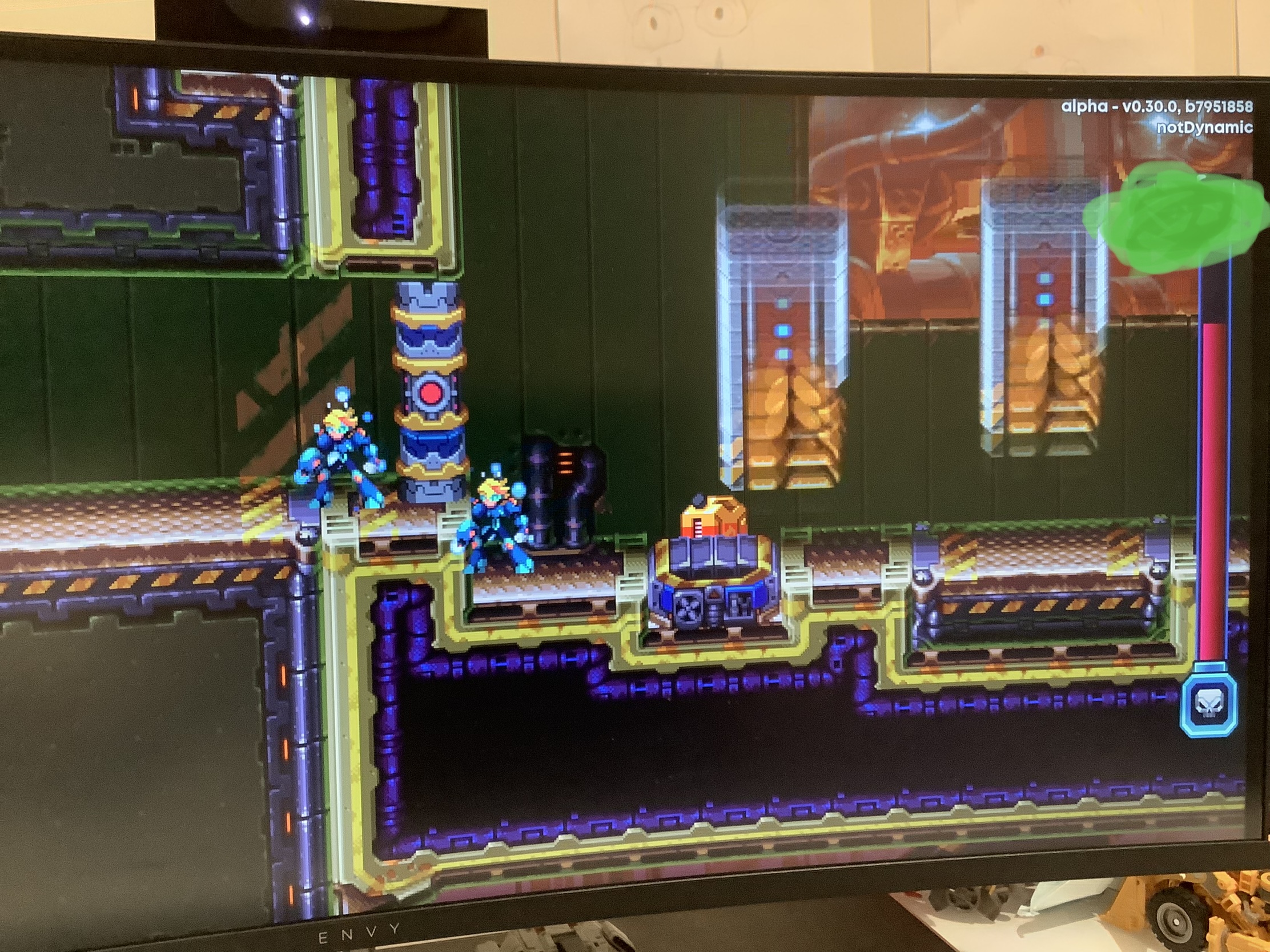 | Description | When in online co op, I (player 2) got stuck behind the bossgate to Capital Punishment. I am not sure how this happened but it seemed like some kind of de sync. When my friend (player 1) died, I got let into the boss fight, which was pretty interesting. Capital Punishment, who was on about a quarter hp and self destructed(…?). I am not sure who the other player was viewing it like, but he did say he say me behind the boss gate too. Perhaps desync happened when the boss is already dead? I was able to be damaged by Capital Pinishment’s lasers, which had a long range. I am not sure whether the fact I am Player 2 caused this to happen. These InTeReStInG desyncs always happen in multiplayer, but for now they are pretty minor and make the game more unpredictable. | ||||