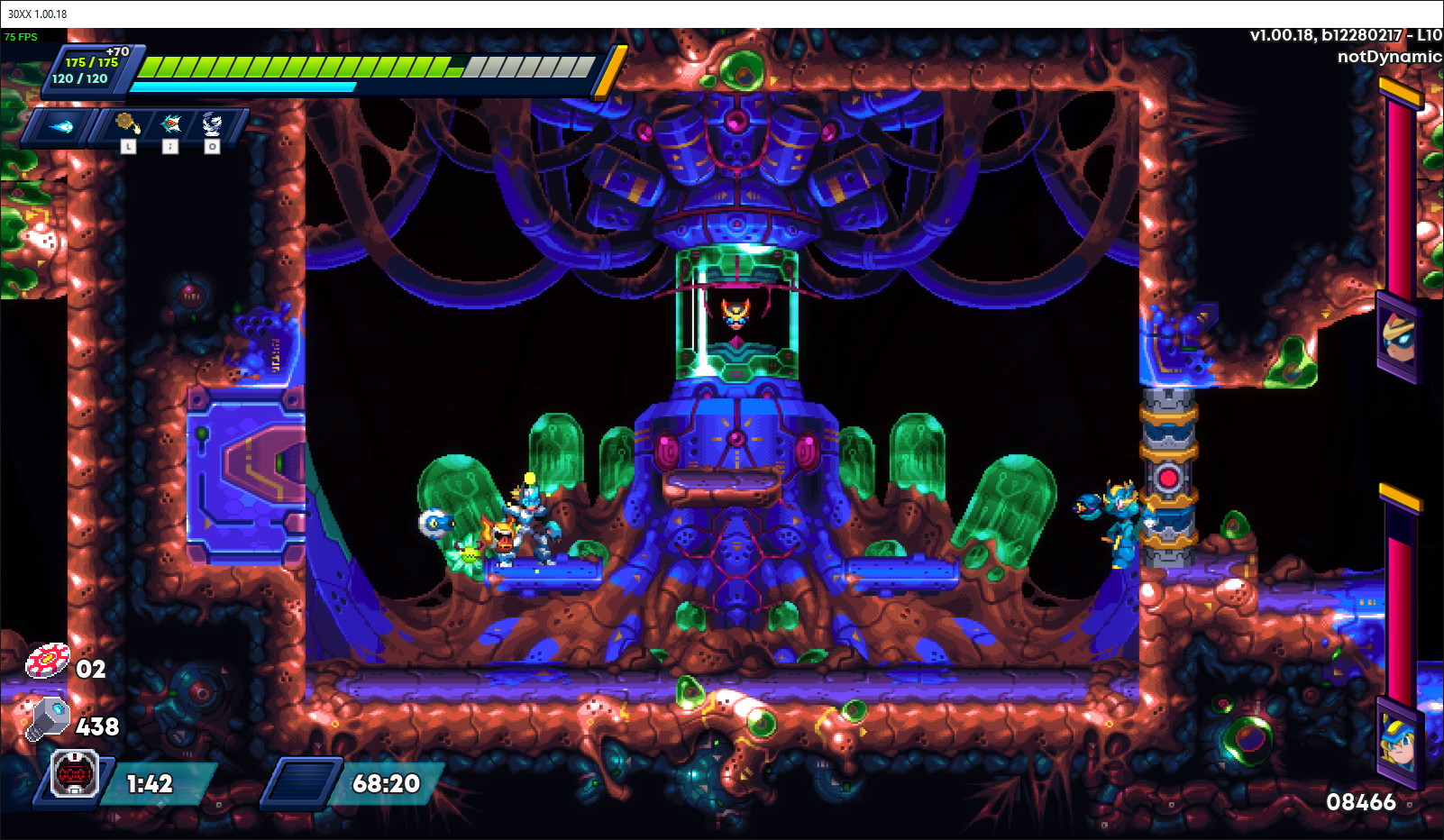 | Description | On level 10, during the first boss fight, first phase, 20XX Nina jumped and collided with the right side arena wall, slid over the boss door, then got stuck there hovering without attacking, making her very easy to kill. After being revived in the second phase her behaviour worked normally again. | ||||