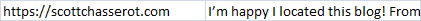 | Description | https://scottchasserot.com "I’m happy I located this blog! From time to time, students want to cognitive the keys of productive literary essays composing. Your first-class knowledge about this good post can become a proper basis for such people.I regularly visit this site to check out the events and functions and sometimes for resources. However, it has been a while that you have shared some news about latest or upcoming events. " | ||||