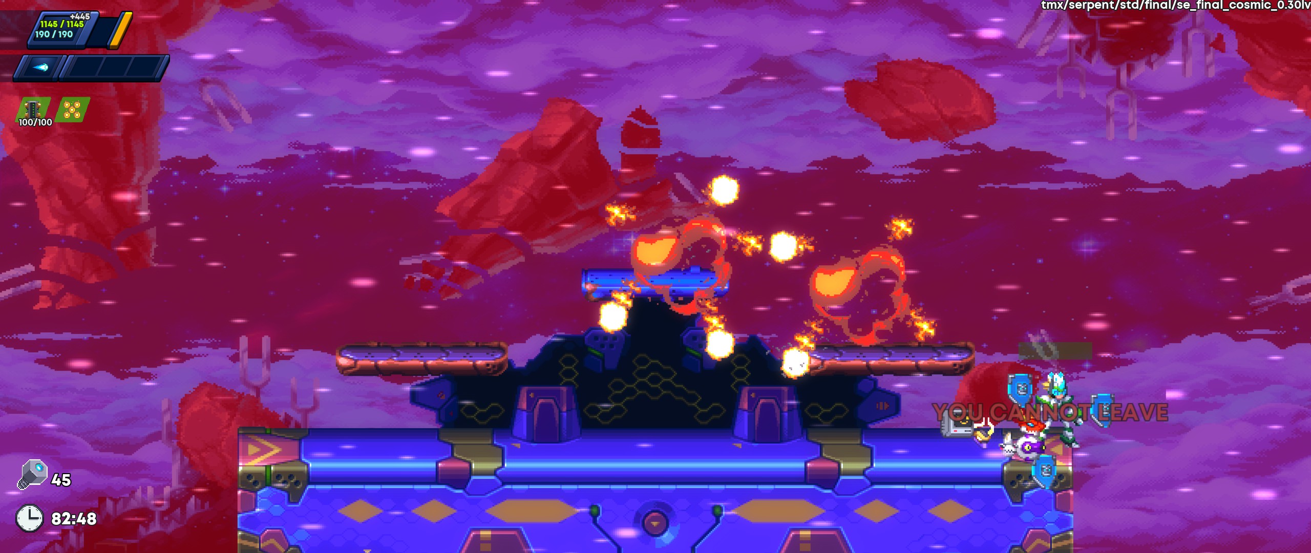 | Description | Finished an Entropy 32 run (but not really); got to the final (final) boss, and one of my repros struck the killing blow while I was grounded and holding the teleport button to skip the cutscene. The skip went off while charging the teleport, and I let the teleport go off roughly at the same time as the screen fade-in from black took place. I wound up outside the final boss arena and voided out back to the final (final) boss's arena, which locked me in and prevented me from leaving. |