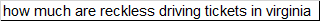 | Summary | 0002010: how much are reckless driving tickets in virginia | ||||