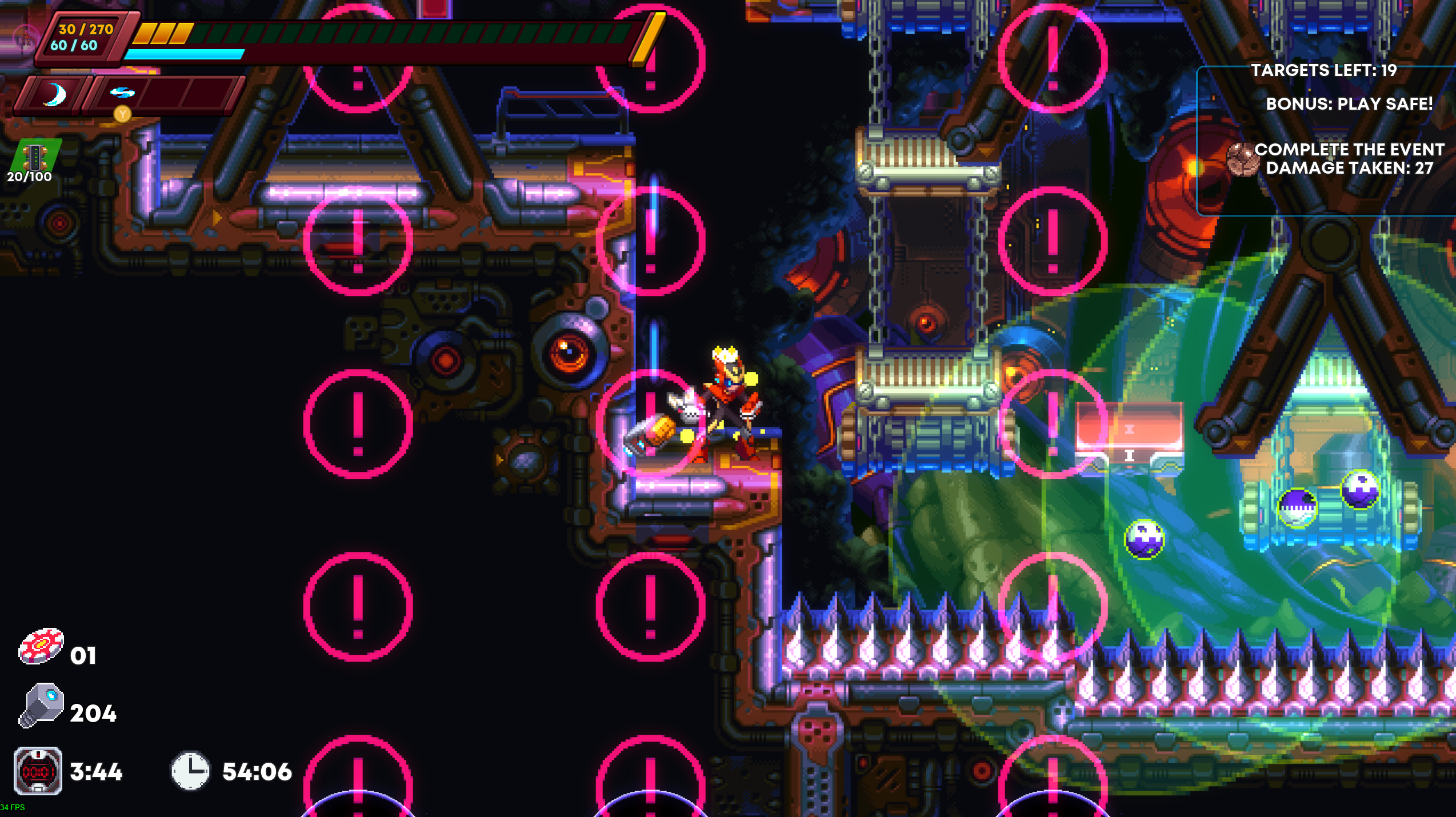 | Description | On a 30-entropy 30xx run, I thought it would chance an entrance to a red glory gate with the "Play Safe - Renders" marquee above it (unfortunately, I cannot remember the level I entered the gate at). I wasn't sure if I wanted to do the challenge within, as I like the challenges where you move through a challenge subsection level, but I would not want to do a Symbol Touch challenge, what with being a level 30 entropy run and having one of my entropy conditions being spikes - level 3 instant death from any stage hazards, a symbol touch challenge was too risky as it had the potential to wash any surplus I had of health and sub tanks down the drain. I entered the gate and began spamming LB (Xbox controller), so I could exit immediately if it was not the challenge section like I wanted. Lo and behold, it was a symbol touch challenge, so when Ace immediately teleported away I just continued my run. You can imagine my surprise when later during the run on level 9, the challenge text and medal conditions appeared in the upper right corner of the screen, along with the renders deadly entropy challenge! Needless to say, this was a run ender. It originally happened before the mechanical Dragon sub boss, but I was not able to tough it out. Attached picture is moments before disaster :(. My initial thoughts are that it has to do with the cutscene that plays when you enter a gate that has a "Play Safe" symbol touch challenge where it shows you all of these symbols and they shine to show the player what to do/where they are. It must have been interrupted when I immediately exited and something about level 9 triggered it. Please fix! I'll be sure to let the cut scene play out in the meantime, Thank you for taking a look. | ||||